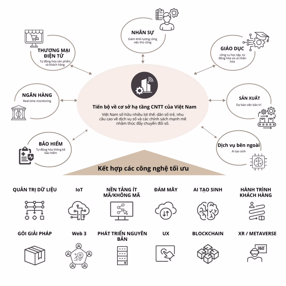 Tại Việt Nam, thị trường AI duy trì tốc độ tăng trưởng bình quân 15,8% mỗi năm, phản ánh quyết tâm của doanh nghiệp trong việc nâng cấp công nghệ và tối ưu hoá quy trình. Sự xuất hiện của AI Agents và xu hướng AI‑Native đang định hình lại cách các tổ chức vận hành, từ ngân hàng, bảo hiểm tới logistics và bán lẻ.