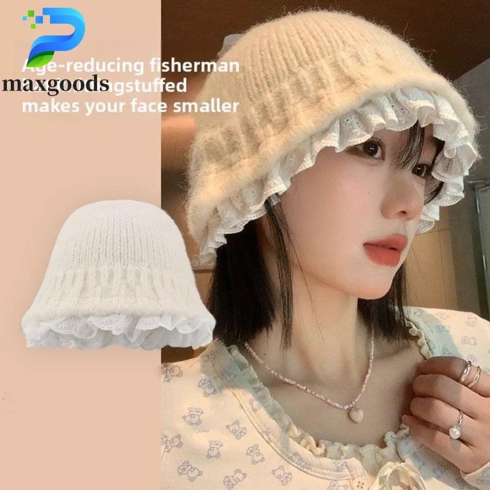 🔥 Mũ xô nữ MAXGOODS dệt kim màu trơn phong cách Hàn Quốc, viền ren rộng, phù hợp cho du lịch đang giảm giá!